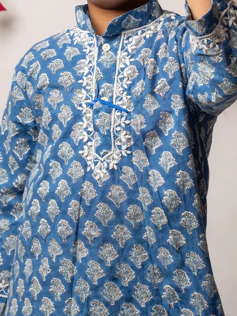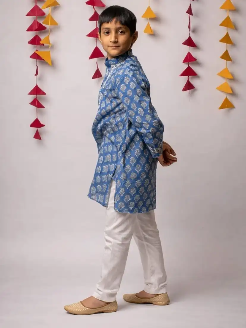 Blue printed Kurta with Trousers