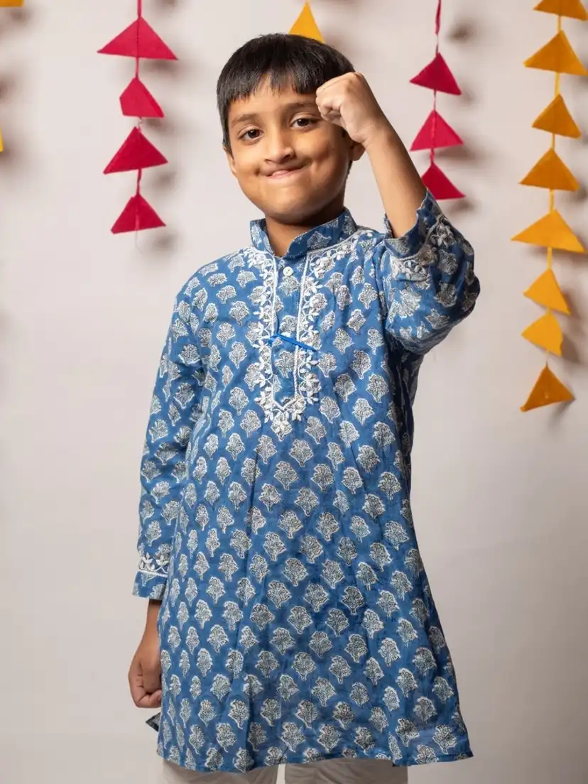Be the first to review “Boys Ethnic Motifs Printed Regular Chikankari Pure Cotton Kurta with Trousers”